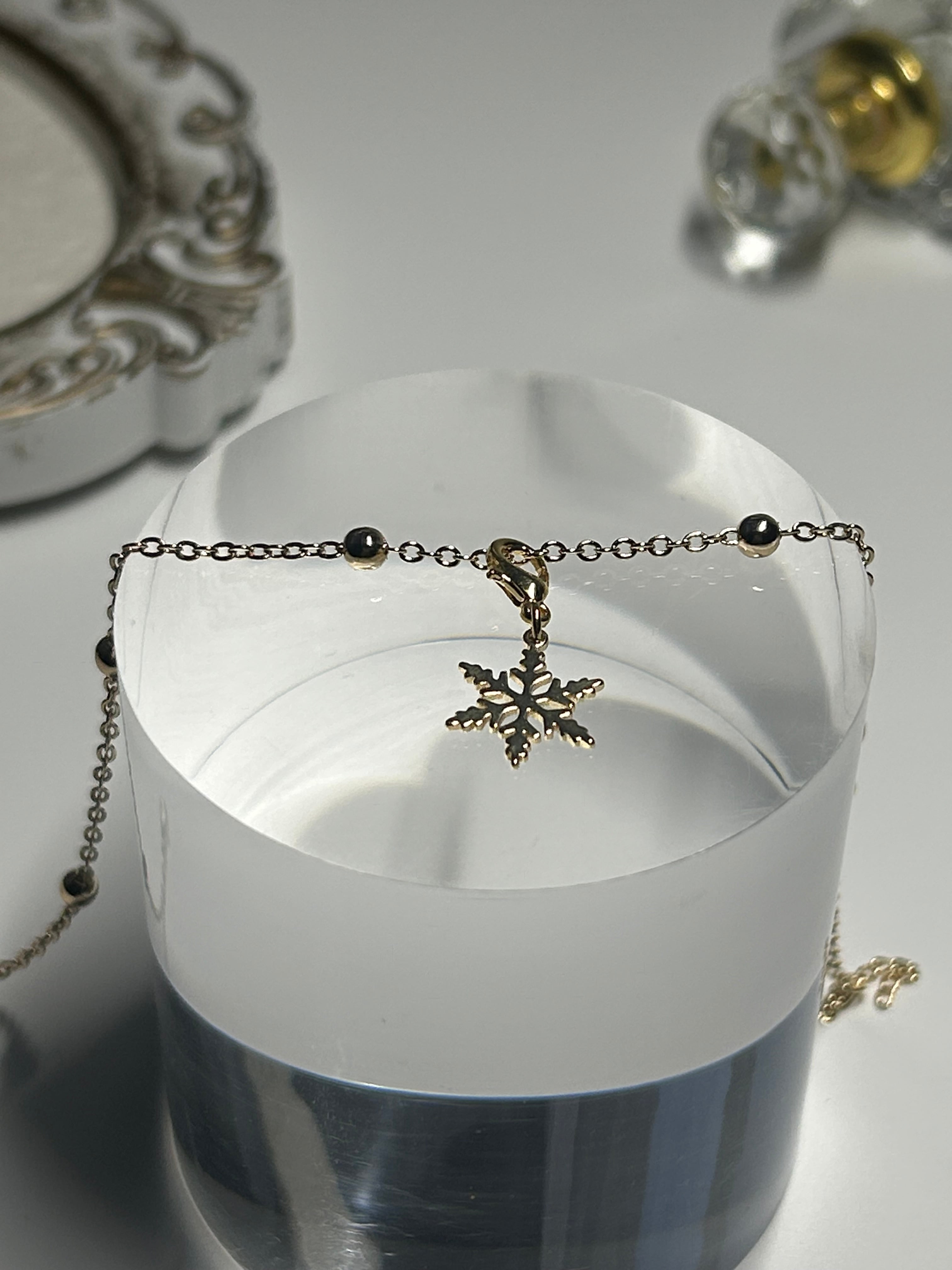 透明な輝きに、雪の結晶がさりげなくきらり。