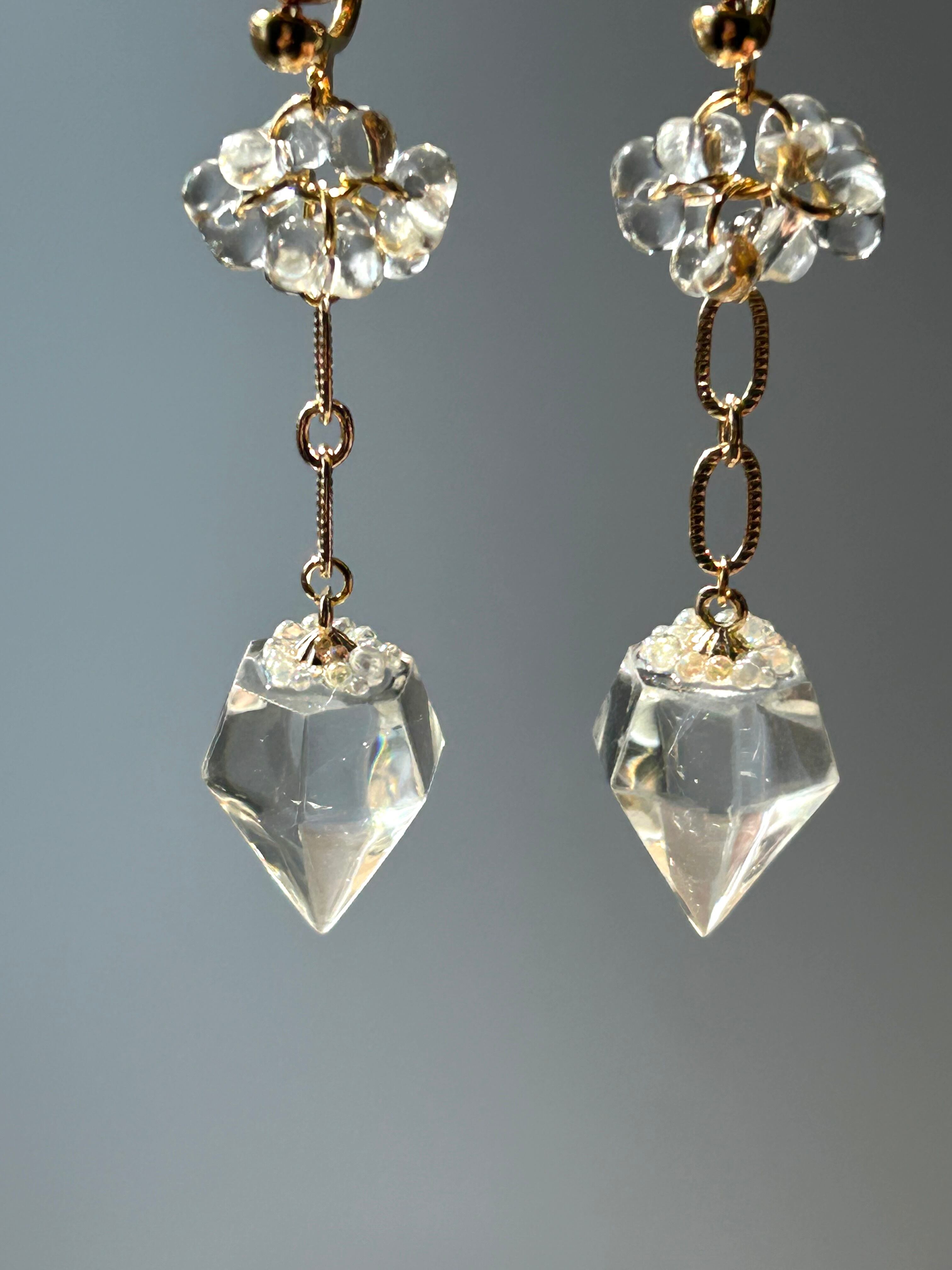 ◾️素材…日本製高品質ファルファーレ、宝石パーツ(レジン)、ヒートン14kgf、マルカンサージカルステンレス。チェーン14kgf、水晶